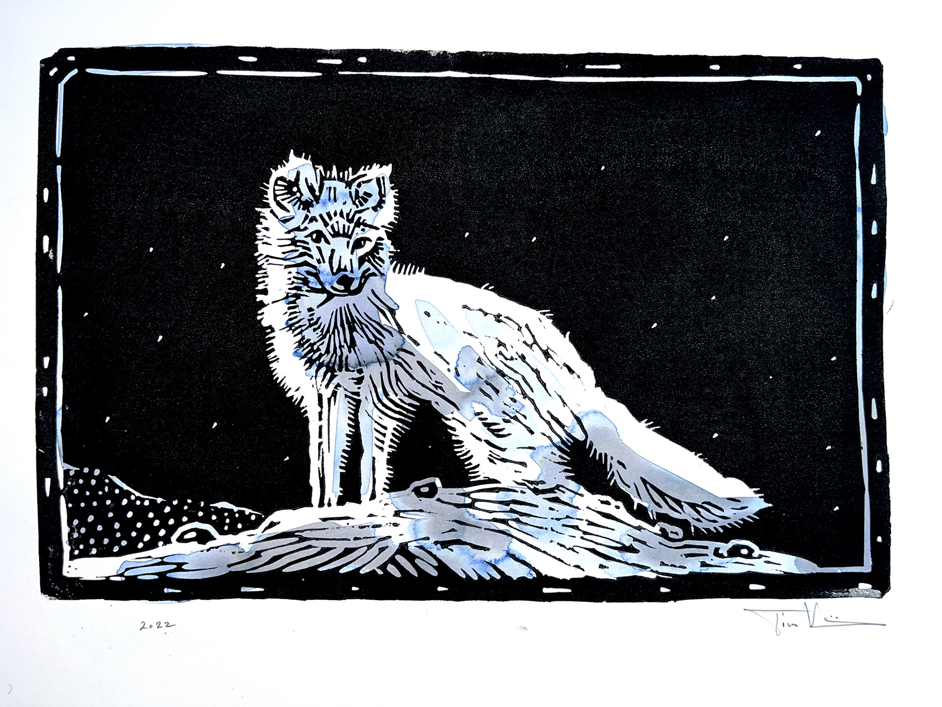Snow Fox (30 cm x 42 cm Origional lino print)