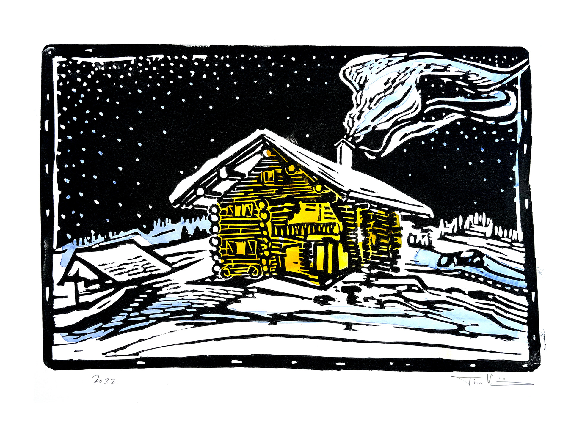 Snow House 1 (30 cm x 42 cm Origional lino print)