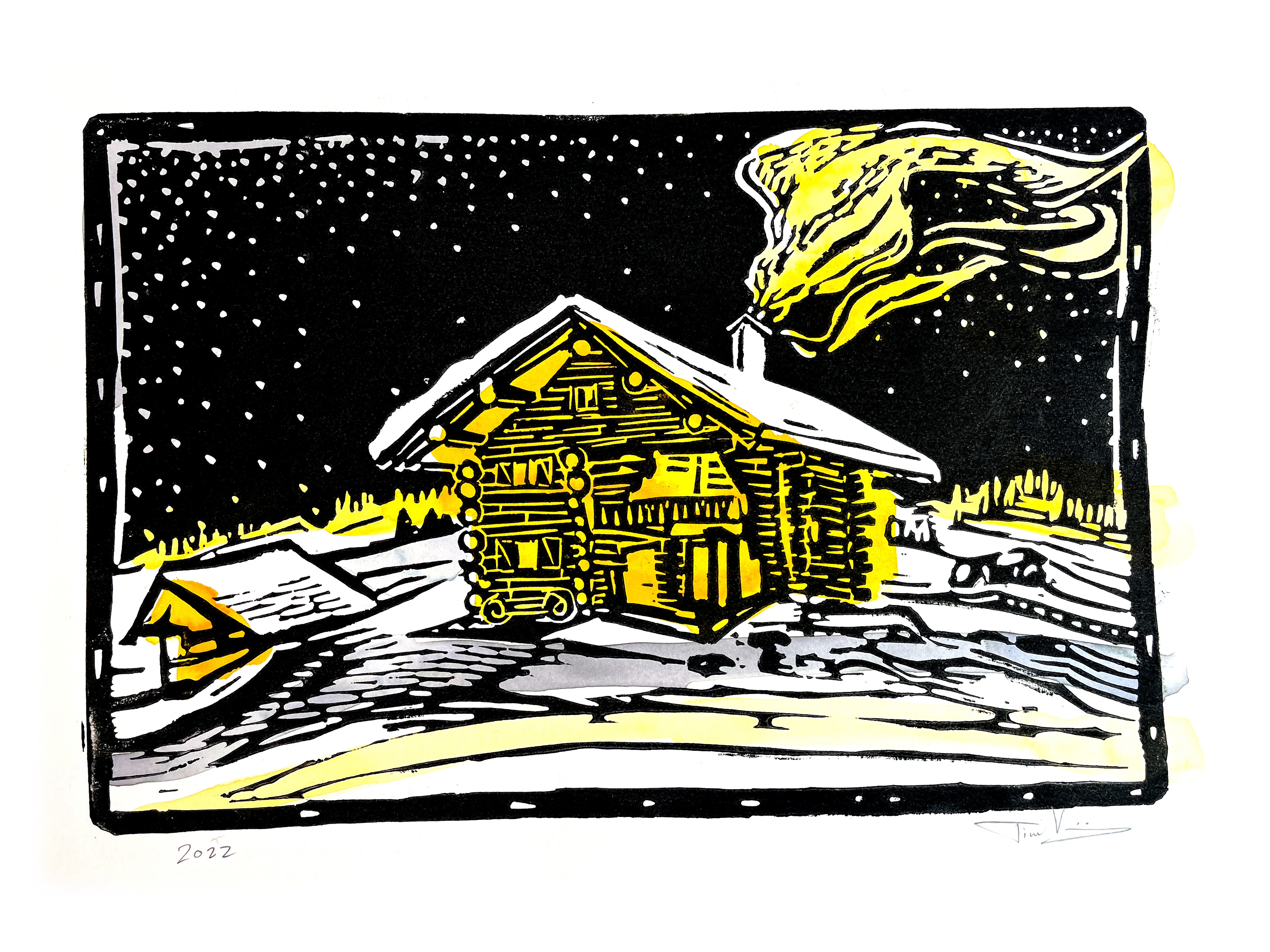 Snow House 2 (30 cm x 42 cm Origional lino print)